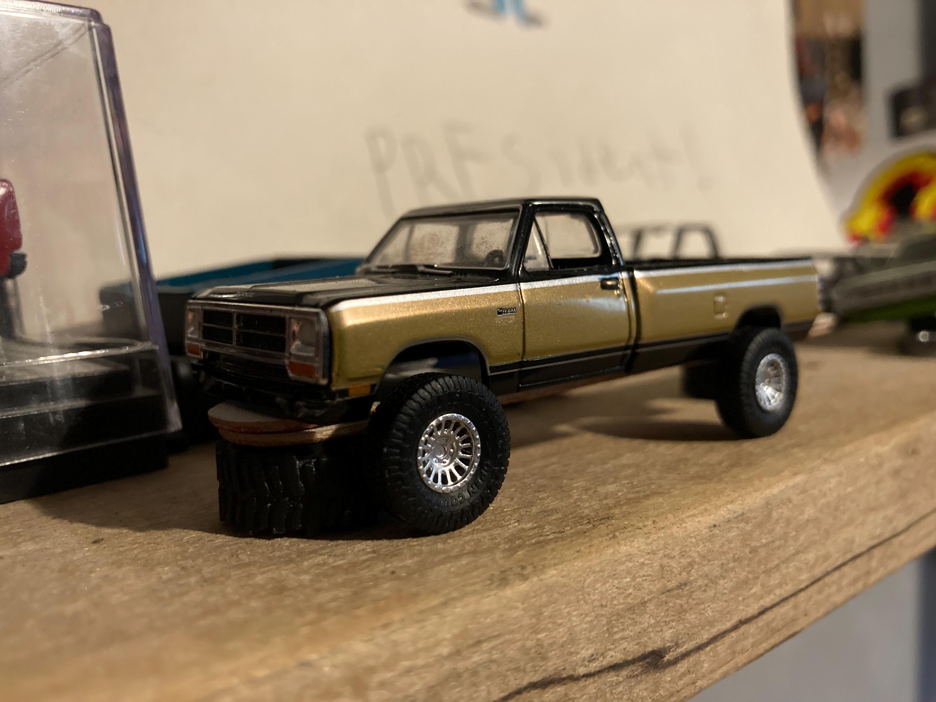 Set of 5 1/64 18" Highly Detailed Miniature KMC KM445 Wheels and 35" Toyo Open Country RT Tires for your custom HotWheels, Matchbox, GreenLight, etc.
