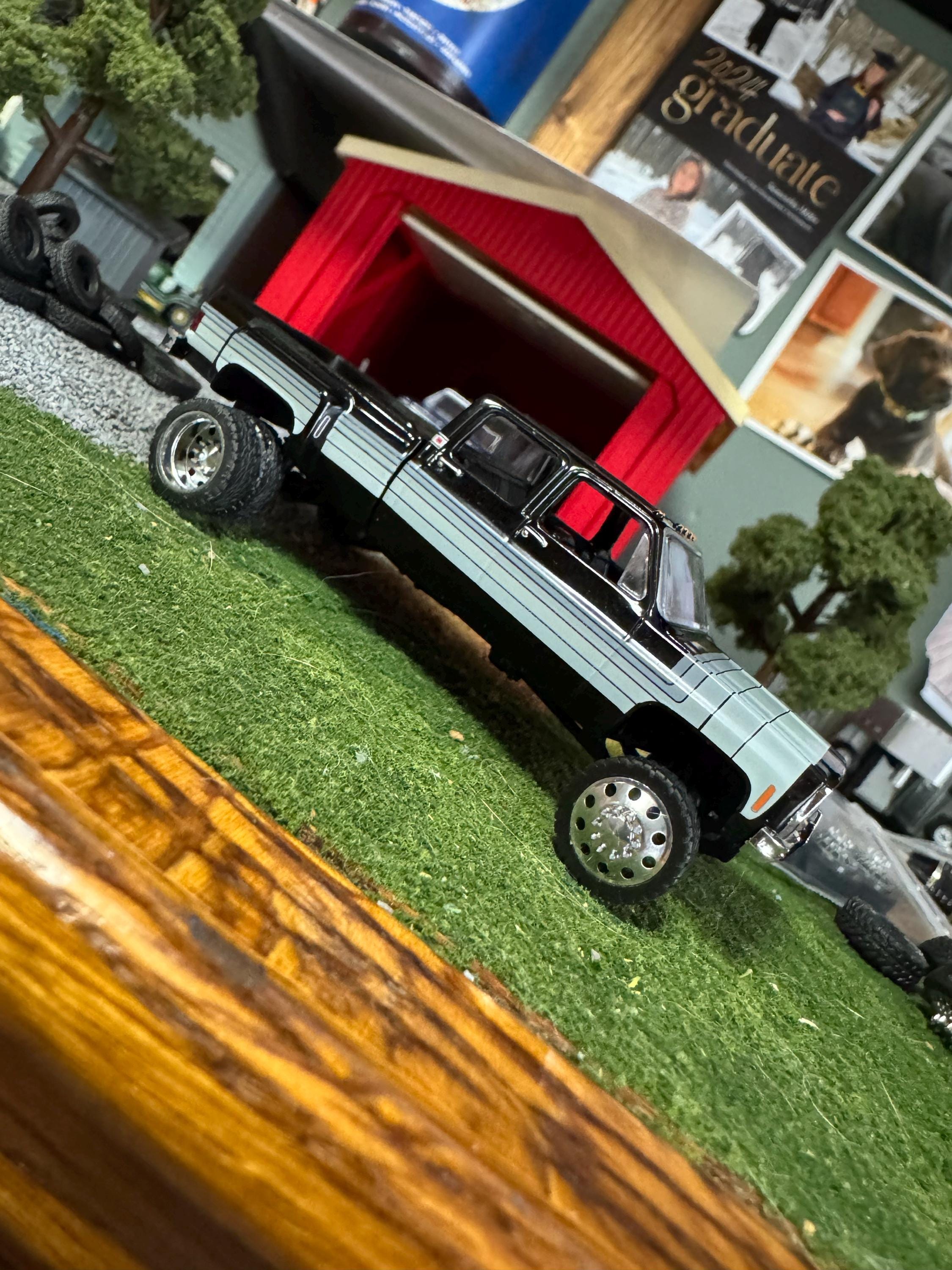 Set of 6 1/64 24" Highly Detailed Dually Wheels and 35" Tires for your custom dually HotWheels, Matchbox, GreenLight, etc. This set comes with traditional dually fronts, super single fronts for the stance guys, and traditional dually rears.