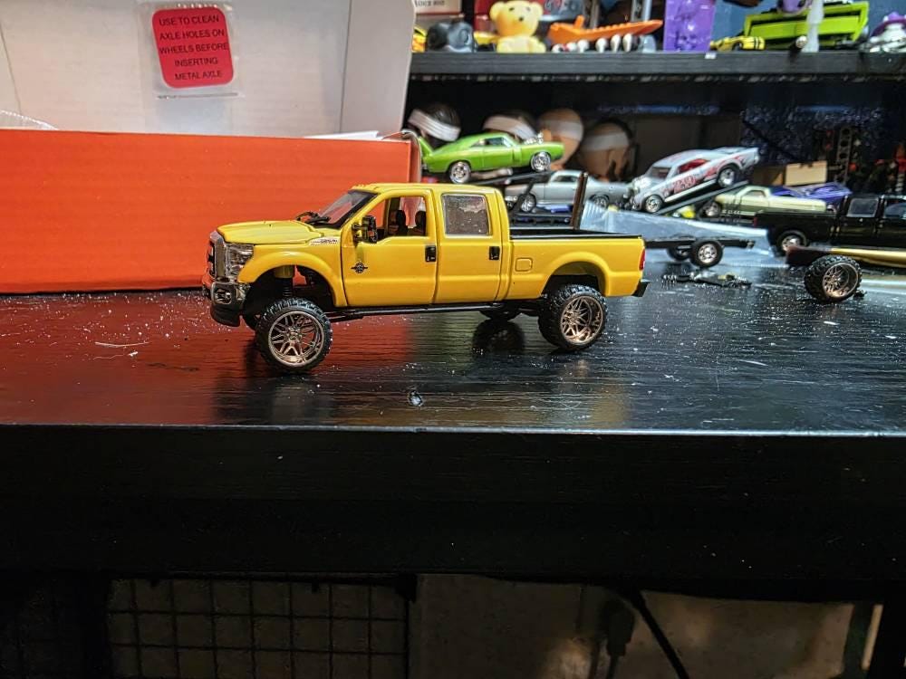 1/64 Highly Detailed Miniature 8" Lifted Chassis for the China Branded 2012 Ford F250 Crew Cab. This is a complete chassis swap and comes black, ready to be painted as you wish. For other options, please send me a message. I can customize the finish for you.