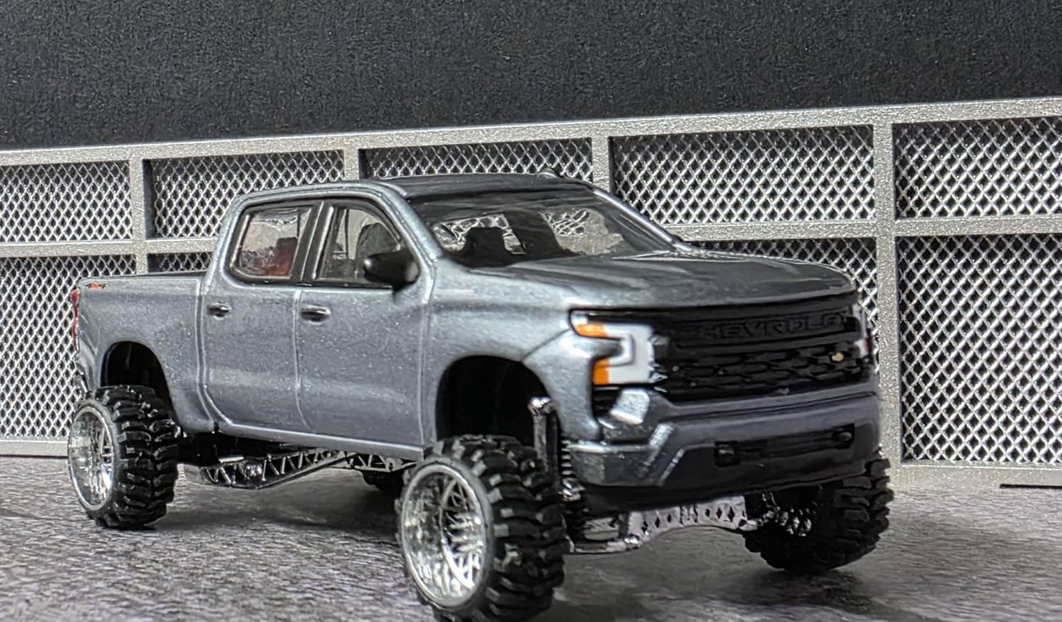 1/64 Highly Detailed Miniature 10" FTS Lifted Chassis for the 2019+ GreenLight Silverado 1500 Crew Cab model. This is a complete chassis swap and comes black, ready to be painted as you wish. For other options, please send me a message. I can customize the finish for you.